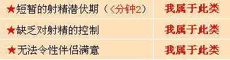 3、壮阳药治射精快:壮阳药只有阳亢兴奋的催情作用,服的越多,虚火越旺,肾水越少,肾水少不足以制虚火,不能固摄精关,以致龟头稍有刺激,易射精。