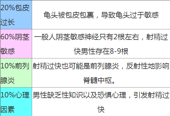 射精过快病因复杂,患者如果没有通过具体科学检查,就盲目进行治疗,不仅是对自己的不负责任,而且没果。